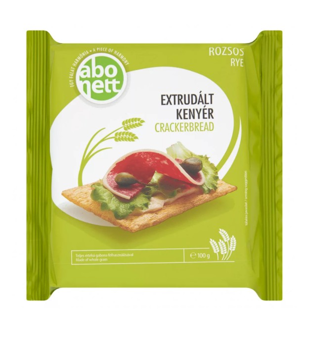 Az Abonett extrudált rozsos kenyér a teljes gabonaszemek felhasználásával készült, tartósítószerek nélkül, hogy természetes és rostban gazdag opciót kínáljon az étkezéseidhez.