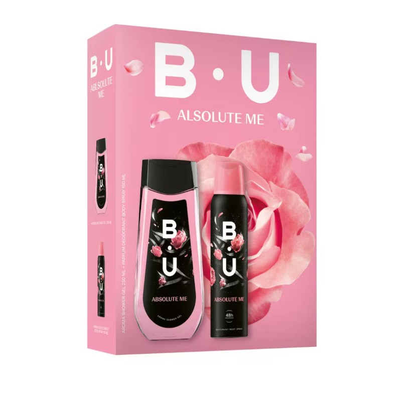 - B.U. Absolute Me Tusfürdő (250 ml): Gyengéden tisztítja és hidratálja a bőrt, frissítő élményt nyújtva minden zuhanyzás alkalmával. Finom illata felkészíti a bőrt a dezodor használatára, rétegezve az illatélményt.