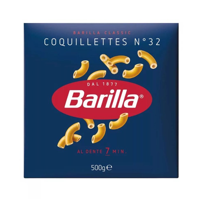 A Barilla Coquillettes n.32 apró könyök cső formájú tészta, 500 g-os kiszerelésben. Durumbúza felhasználásával készül, ami jellegzetes textúrát és kiváló főzési eredményt biztosít, így a tészta stabil és ízletes marad minden szósz mellett.