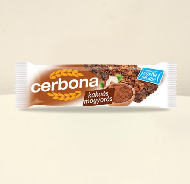A Cerbona kakaós-mogyorós müzliszelet hozzáadott cukor nélkül, édesítőszerrel készül. Értékes tápanyag-összetételű, élelmirost-forrás, ezáltal jól beilleszthető az egészséges táplálkozásba. A kakaós-mogyorós müzliszeletet a kakaópor, földimogyoró, mogyoró és mazsola, valamint a gabonapelyhek és a lapított zabpehely teszik ellenállhatatlanul finommá. A vegán életmódot követők is fogyaszthatják. Könnyen magaddal viheted és bárhol fogyaszthatod müzliszeleteinket. Kóstold meg a többi ízt is!