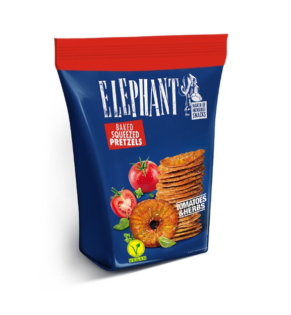 Chips-tallér paradicsomos-fűszeres. Az Elephant lapos perec egy különleges, ropogós snack, amit fogyaszthatsz önmagában, sajttálhoz, krémleveshez, humuszhoz, krémsajthoz, előételkén. Felhasználásában csak a képzelet szabhat határt! Sütőben sült, tartósítószer- és színezékmentes, ízletes ropogtatni való az egész családnak.