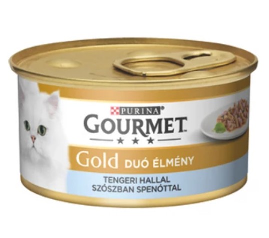 A Gourmet Gold Tengeri hallal Spenótos Szószban 85gr- Duó Élmény konzerveledel felnőtt macskák számára készült. Minden halrajongó cica számára ellenállhatatlan duó élmény!