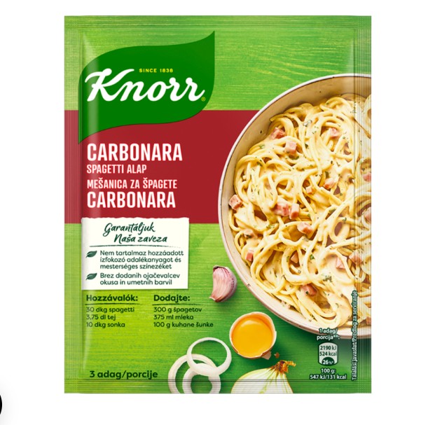 Carbonara spagetti alap. Ebben az ételben a Knorr séfek a füstölt szalonna és a krémes tejszín harmónikus kombinációján keresztül ragadták meg az igazi olasz carbonara szósz lényegét.