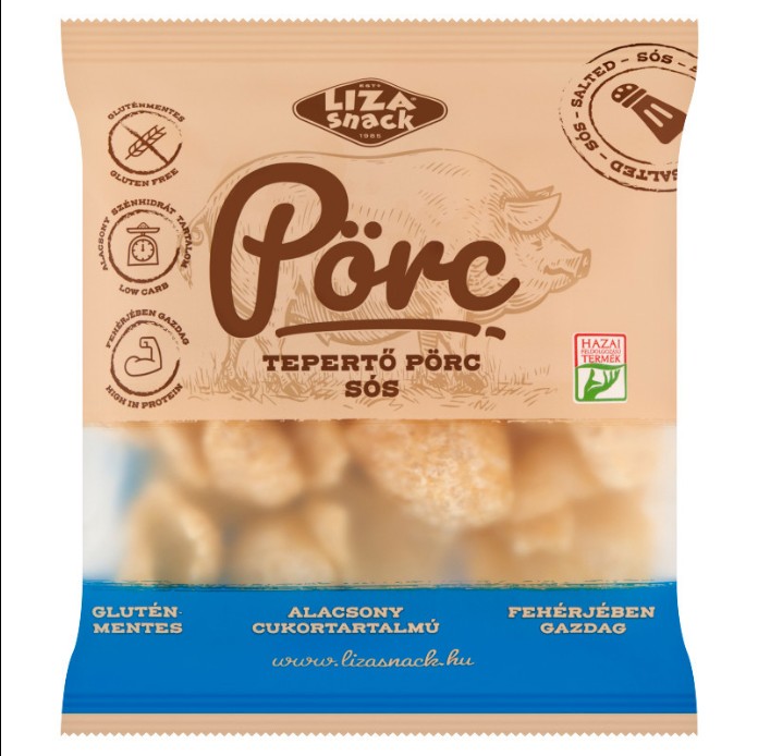 Sós ízesítésű sertésbőrből készült ropogós snack.