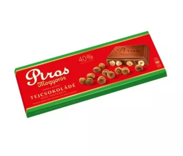 Piros Mogyorós táblás tejcsokoládé 225g egész mogyoróval