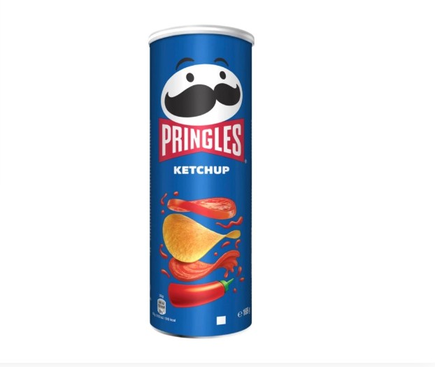 Pringles ketchup ízesítésű snack henger alakú dobozban.