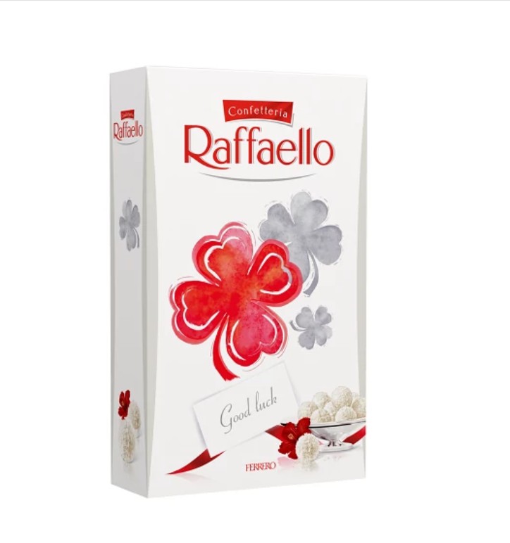 Hófehér és kifinomult – a Raffaello egy testet öltött remekmű a Ferrero Pralinék világában: kókuszreszelékkel borított ropogós ostya kókuszos krémmel töltve, belsejében egész szem mandulával. A Raffaello gondosan megválogatott összetevők harmonikus elegye: kaliforniai mandula és csendes-óceáni-szigeteki kókusz. Autentikus ízek, amelyek a Raffaellót oly gyengéddé és fenségessé teszik. Tárolási információ: száraz, hűvös helyen tárolandó!