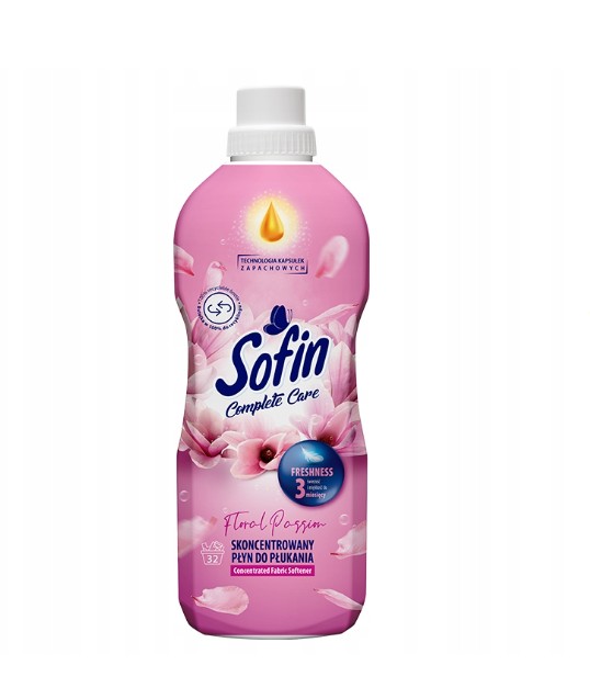 A sofin Floral Passion öblítő hosszan tartó frisseséget és illatot biztosít a ruháknak. A különleges illatkapszula technológia következtében az illatok folyamatosan szabadulnak fel és nagyon sokáig megmaradnak. A speciális összetevőknek köszönhetően a ruhák puhák és selymesek maradnak. 100%-ban újrahasznosítható a flakon, a perforált címke pedig könnyen eltávolítható.