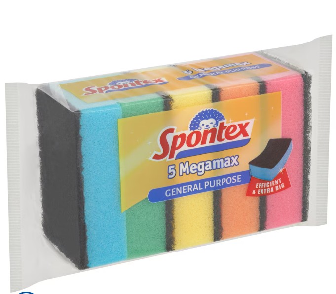 A Spontex Megamax mosogatószivacsa extra nagy méretű, és ideális a mindennapi használatra. Fekete dörzsölő rétegének köszönhetően nagyon hatékony és tartós.
