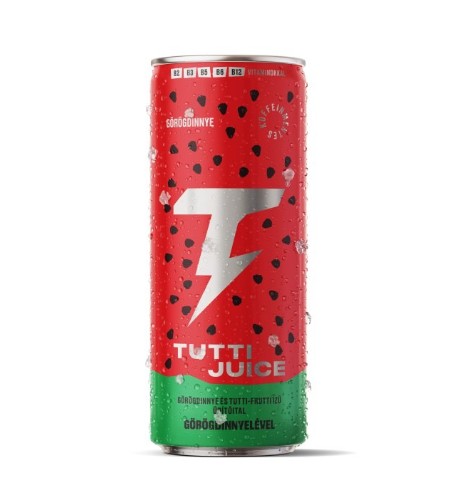 A Tutti Juice Görögdinnye egy koffeinmentes, enyhén szénsavas üdítőital, amely a tutti-frutti és a görögdinnye ízének frissítő kombinációját kínálja. B-vitaminokkal gazdagított, beleértve a B2, B3, B5, B6 és B12 vitaminokat. A termék nem tartalmaz tartósítószert, és pasztőrözött eljárással készül.