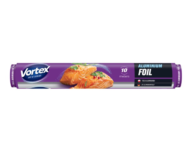 Vortex alufólia 10 m / 28 cm. Használható húsok, zöldségek sütésénél, grillezésénél, csomagolásánál. Frissen tartja az élelmiszert, megakadályozza a szagok átvételét és fény ellen is véd.